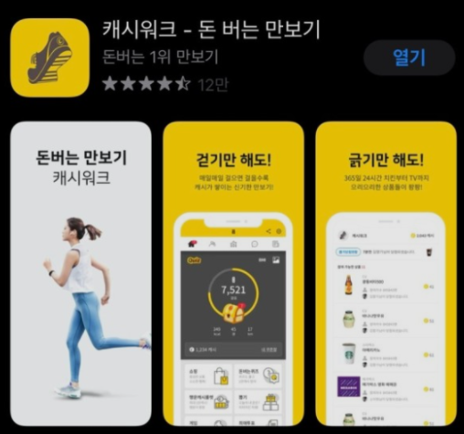 캐시 워크란 만보기 어플이지만 리워드 앱입니다. 리워드 앱이라고 해서 생소한 분들도 많으실 텐데요 간단하게 말해서 특정 행동 또는 광고 시청이나 다운로드를 통해서 포인트를 얻을 수 있으며 이 포인트를 이용해서 편의점이나 베이커리 캐시 등으로 교환을 하실 수 있습니다. 하루 최대 만보로 100 캐시를 얻을 수 있습니다.