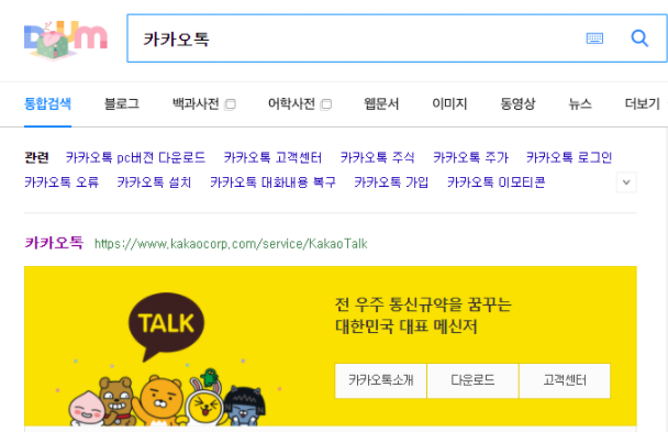 카카오톡 PC버전 다운로드 방법에 대해 소개해 드리겠습니다. 먼저 소개해 드릴 방법은 카카오톡 홈페이지에 방문하셔서 다운받는 방법입니다. 인터넷을 켜 주시고 검색 포털로 이동하신 뒤 검색창에 "카카오톡"을 입력하여 주시고 엔터를 한 번만 눌러주시오. 아래에 카카오톡 홈페이지로 이동할 수 있게 링크가 나올 텐데 링크를 한번 클릭해 주시면 됩니다.
