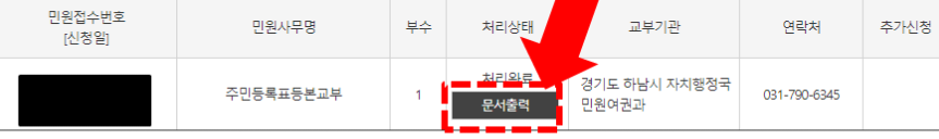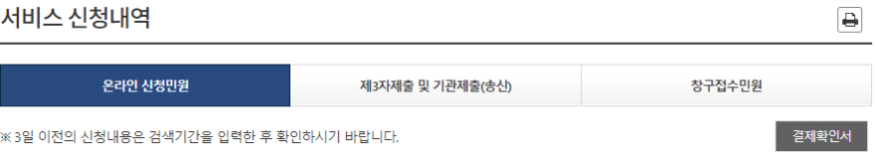 잠시 후 서비스 신청내역으로 이동하게 되며 내가 필요한 서류가 맞는지 한번 더 확인 후 이상 없는 경우 문서출력을 눌러주시면 완료됩니다.